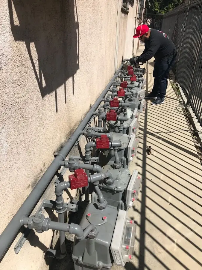 We use calibrated gas detectors and pressure decay testing to pinpoint the exact location of the leak — whether it is at a fitting, a flex connector, an appliance connection, or in the supply line itself.